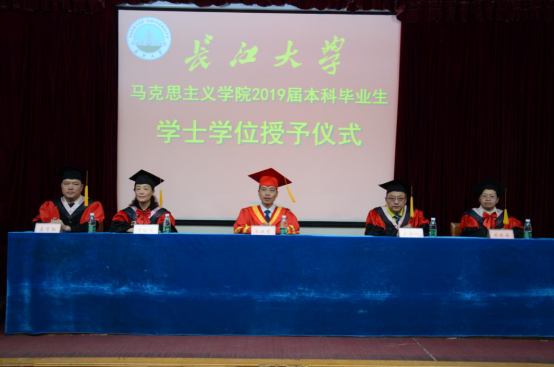 (通讯员 饶静)2019年6月14日上午8点半,马克思主义学院在东校区11教学术报告厅举行2019届本科毕业生学士学位授予仪式。校党委书记朱业宏、vwin德赢AC米兰官网院长王金洲、副院长姜学勤、副院长黄晓云、政治系主任贾廷秀作为导师代表出席了本次活动,活动由学院分党委副书记马小佼主持。