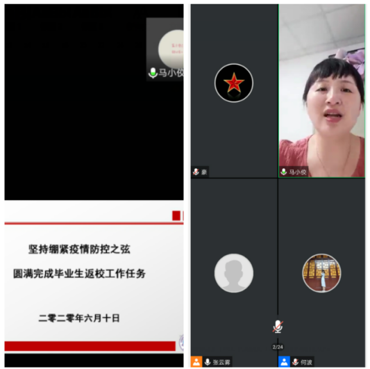 会上,马小佼副书记首先传达了学校毕业生返校工作动员会的相关精神,重点解读了长江大学2020届毕业生返校工作实施方案,并就vwin德赢AC米兰官网毕业生返校办理离校手续的组织分工、时间安排、办事流程进行了逐一讲解。辅导员张云雾老师则从学生返校前、返校中、返校后的具体准备工作和注意事项进行了宣讲,提醒返校学生加强安全防范,遵守校纪校规,高效办理离校手续。毕业生们还就毕业生离校手续清单办理流程、在校期间饮食、行李托运等具体事项进行了咨询,学院老师进行了线上解答。