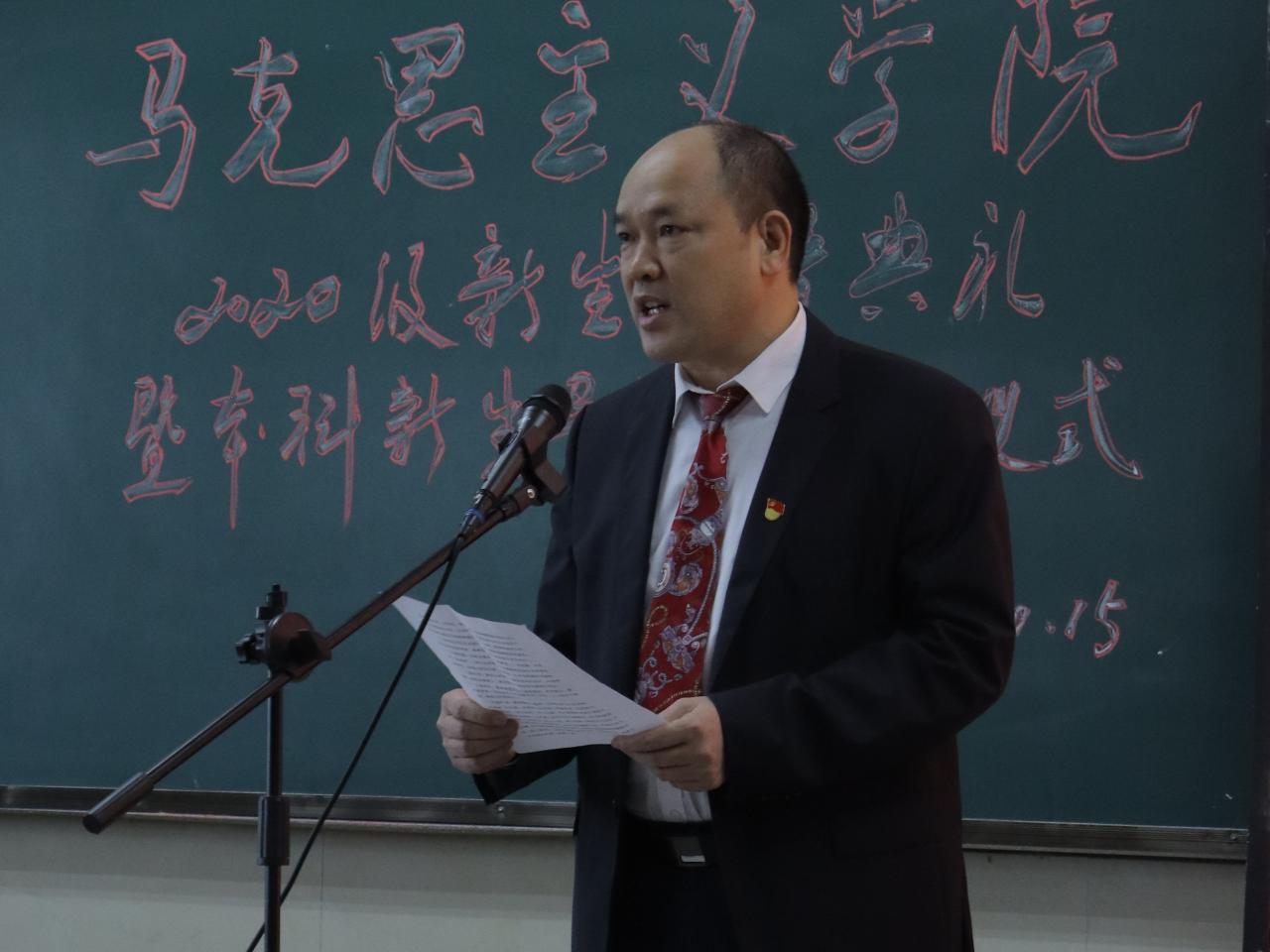 典礼在庄严的国歌声中拉开帷幕。思政12002班张圣文作为本科新生代表发言,表达了自己来到长大马院的欣喜与期盼。他呼吁全体新生快速适应大学,做好学涯规划;以学为主,全面发展;严于律己,遵规守纪。