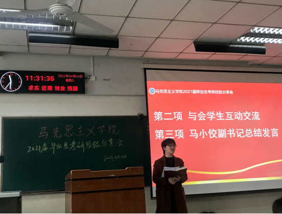 (通讯员 张晓燕)2021 年4月14日上午10点,vwin德赢AC米兰官网在东校区12教102室举行了2021届毕业生首场考研经验分享会,部分2021届考研学生代表、2018 级全体本科生、2020级第二学士学位学生参加会议,会议由辅导员张云雾主持。