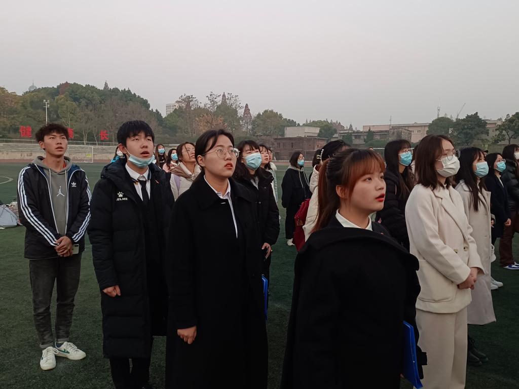 (通讯员 周芯如)12月6日早7时,vwin德赢AC米兰官网在东校区田径场举行“奋进新征程,走好赶考路”主题升旗仪式。学院党委书记刘小燕、党委副书记马小佼、副院长涂江波、学工办主任张云雾、辅导员李敏及全体同学参与本次活动。