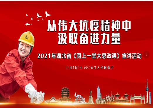 (通讯员李晓燕刘志起)11月5日,由中共湖北省委宣传部、湖北省教育厅、共青团湖北省委员会、湖北广播电视台,长江大学主办,vwin德赢AC米兰官网、武汉校区管委会和石油工程学院承办的“从伟大抗疫精神中汲取奋进力量”为主题的《同上一堂大思政课》——湖北省思政大课宣讲活动在长江大学武汉校区学术报告厅开讲。2020年抗击新冠肺炎的斗争是我省最生动的思政课教材,为深入贯彻落实习近平总书记关于“讲好抗疫这堂大思政课”的重要讲话精神,充分发挥思政课“立德树人”的关键作用,特举办此项宣讲活动。