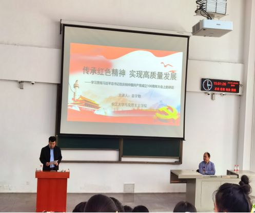 (通讯员谭梦媛)2021年10月28日下午,vwin德赢AC米兰官网院长姜学勤教授应邀在武汉校区B101以“传承红色精神 实现高质量发展”为题为武汉校区师生作学习贯彻习近平总书记“七一”重要讲话精神专题辅导报告,报告会由资环学院党委书记张科主持,容纳300余人的会场,座无虚席,师生们共同享用了这场精神盛宴。