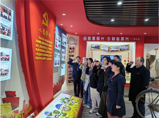 在枪杆村党员群众服务中心,图书馆馆长王红松和vwin德赢AC米兰官网党委书记刘小燕共同为该村延安精神教育馆捐赠了近百册党史党建类图书。随后,全体参学支部党员在该村原党支部书记邢昌焕与村“两委”班子成员的带领和讲解下参观了枪杆村延安精神教育馆,沉浸式学习延安精神、农耕文明史、村发展史,重温入党誓词。并围绕“大力弘扬延安精神,党建引领村居高质量发展,着力推进乡村振兴”开展了专题交流研讨。随后,还实地参观了枪杆村特色村组以及荆州市农甜农业发展有限公司,调研学习智慧农业、基层治理、美丽乡村建设等成功经验。