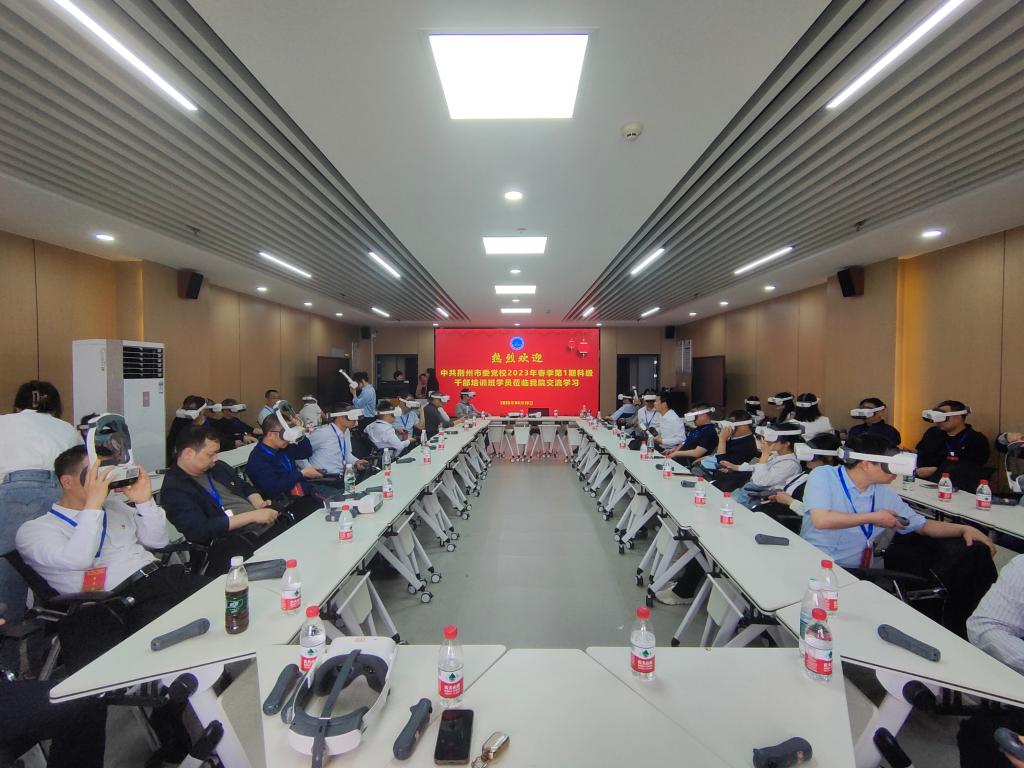 4月13日下午,荆州市委党校2023年春季主体班第一期科级领导干部研修班全体学员来到长江大学研学,在Vwin德赢唯一官方网站“生命长江”虚拟仿真实验室沉浸式学习长征精神。