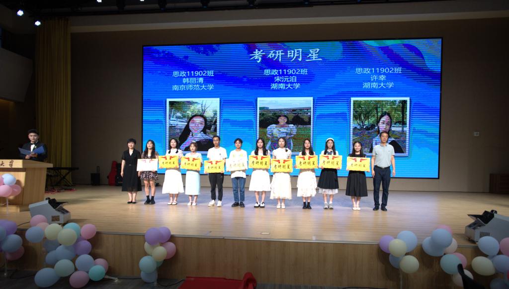 大会在庄严的国歌声中拉开帷幕。随后学院党委书记刘小燕宣读优秀毕业生和考研明星表彰文件。与会领导老师分别为获奖学生代表进行了颁奖。