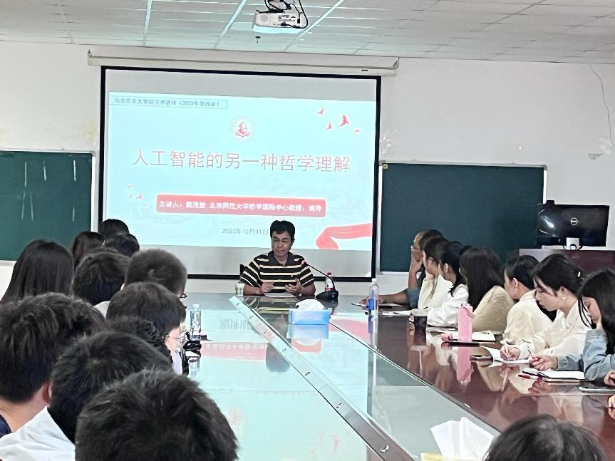 (通讯员 黎娟 王雅云)10月11日上午,Vwin德赢唯一官方网站在文科楼1104会议室举办了“2023年度vwin德赢AC米兰官网系列学术讲座(第四场)”,此次活动邀请到了北京师范大学哲学国际中心教授、人工智能伦理治理实验室主任、博士研究生导师戴茂堂教授,他为Vwin德赢唯一官方网站师生带来了一场题为“人工智能的另一种哲学理解”的精彩讲座。讲座由学院副院长涂江波教授主持。