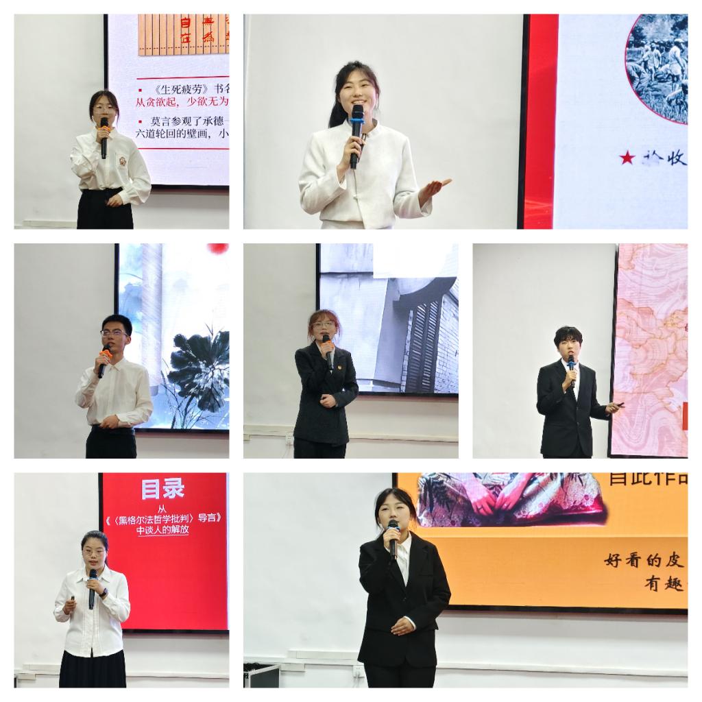 王玮琦等14名参赛选手结合自身学习经历、成长足迹,畅谈读书收获、分享读书心得。借助精致美观的PPT,从《中国人的精神》《法兰西的阶级斗争》《兄弟》《你当像鸟飞向你的山》《皮囊》《文化苦旅》《边城》《生死疲劳》《苏东坡传》《帝国主义是资本主义的最高阶段》《红星照耀中国》《文明型国家》《黑格尔法哲学批判导言》《撒哈拉的故事》等经典书目中,他们选取自己喜欢的段落句子进行交流分享,从书本中关照现实、在交流中增长智慧、从探讨中凝聚共识,在分享中传递文字之美、思想之美、人性之美、生活之美。深邃的解析和动人的讲述,展现了“00后”青年奋斗、无畏、昂扬的新时代风采,引起了听众强烈的思想共鸣。经过一个半小时的激烈角逐,vwin德赢AC米兰官网吴宇洁凭借出色表现获得一等奖,湛淑静等三位选手获得二等奖,张峻荣等四位选手获得三等奖,冯星雨等六位选手获得优秀奖。