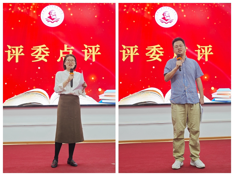 在评委点评环节,针对1-7号选手,彭孝光将他们的分享书目巧妙串联,结合个人阅读体会进行细致深入的评价;他勉励同学们将阅读内化为习惯,持续深入研读经典名著尤其是哲学社科类著作,拓宽知识视野,强化批判思维。针对8-14号选手,张莉从主题选择、内容安排、技巧运用、仪表台风等方面逐一点评,希望同学们把读书作为精神追求,结合时代背景,准确理解经典著作的价值内涵,持续从阅读中汲取智慧与乐趣。