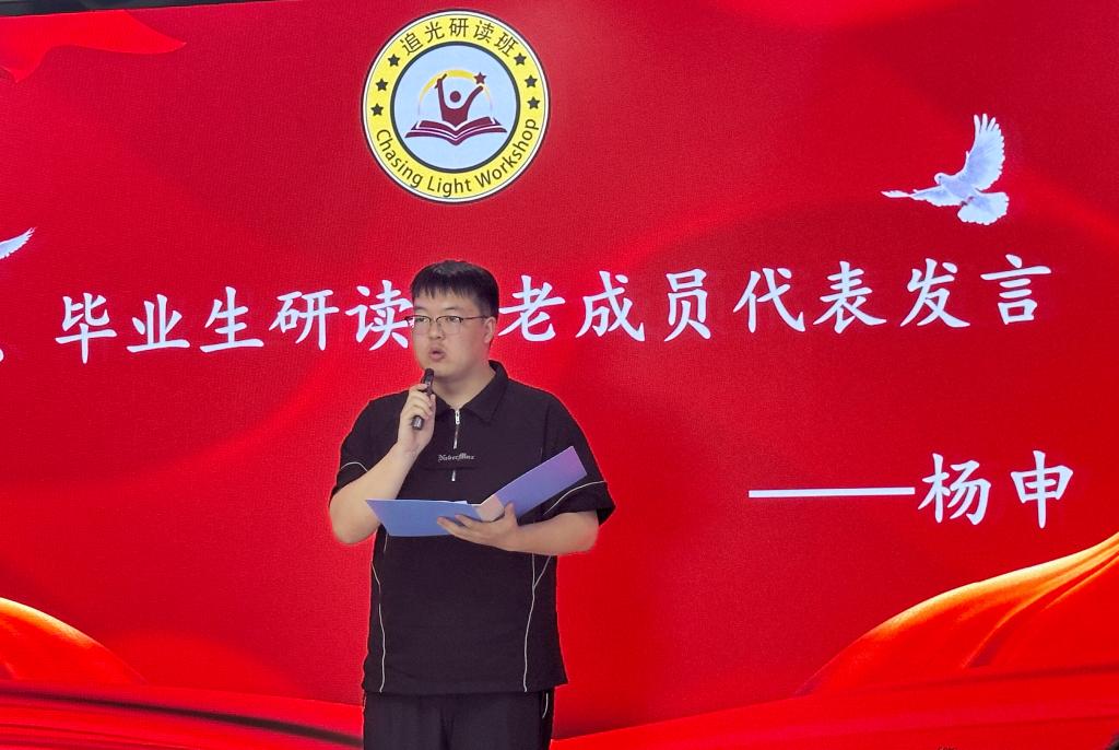 从棉衣到单衣,从输入到输出,从青涩到熟练,从浅读到深研,活动伊始,一段专题视频呈现了学子在研读班成长的点点滴滴。随后,研读班指导教师彭孝光在发言中表示,该班组建三年以来,同学们在老师指引下认真品读《资本论》等马列经典著作5部,培养了专业兴趣,夯实了学科基础,收获了美好情谊;希望大家继续保持热爱,在阅读经典中充实和丰盈自我精神生活。