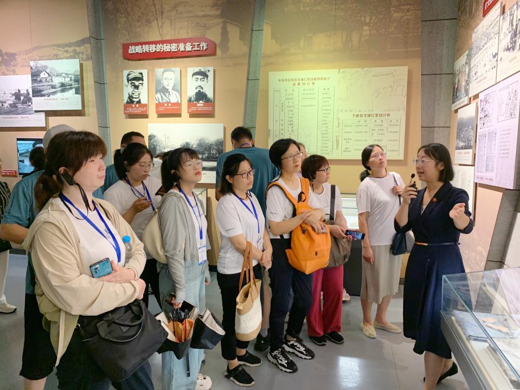 开班仪式结束后,全体研修班成员乘车前往中央红军长征集结地纪念园、纪念馆,长征第一渡口参观学习。老师们走进中央红军长征集结地纪念馆,馆内陈列着丰富的历史文物、图片和资料,生动地展现了中央红军长征的背景、过程和伟大意义。大家认真聆听讲解员的讲解,不时驻足观看,深刻感受到了红军战士们坚定的革命信念和英勇无畏的牺牲精神。一幅幅珍贵的历史照片、一件件饱经沧桑的实物,让人仿佛穿越时空,回到了那段艰苦卓绝的岁月。