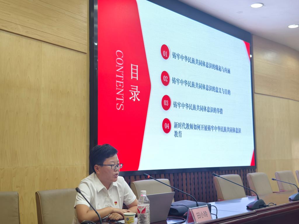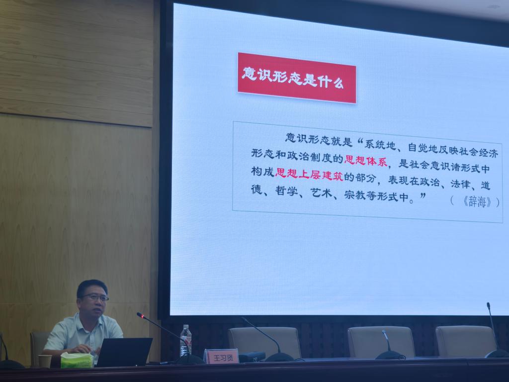 下午,王习贤教授和田小玲教授分别就意识形态开展了专题研讨,王教授讲述了“牢固树立党的意识形态工作的领导权”,田教授深入剖析了“铸牢中华民族共同体意识为推进中国式现代化凝心聚力”。王教授主要从掌握意识形态工作领导力的意义、当前的状况和任务等三个方面诠释。田教授主要从铸牢中华民族共同体意识的缘起与内涵、目的与意义、实践举措和如何开展教育等四个方面进行了深入剖析。