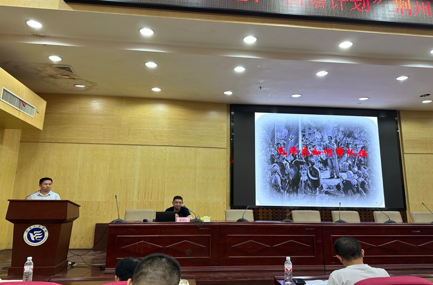 2024年8月8日上午,长江大学2024“国培计划”荆州市中小学党组织书记研修班继续开讲,主题为《毛泽东如何带队伍》。本次报告邀请到了湖南师范大学vwin德赢AC米兰官网博士生导师李风华教授主讲。百余名研修班学员、部分研究生代表在湖南工程学院报告厅专注的聆听了报告。