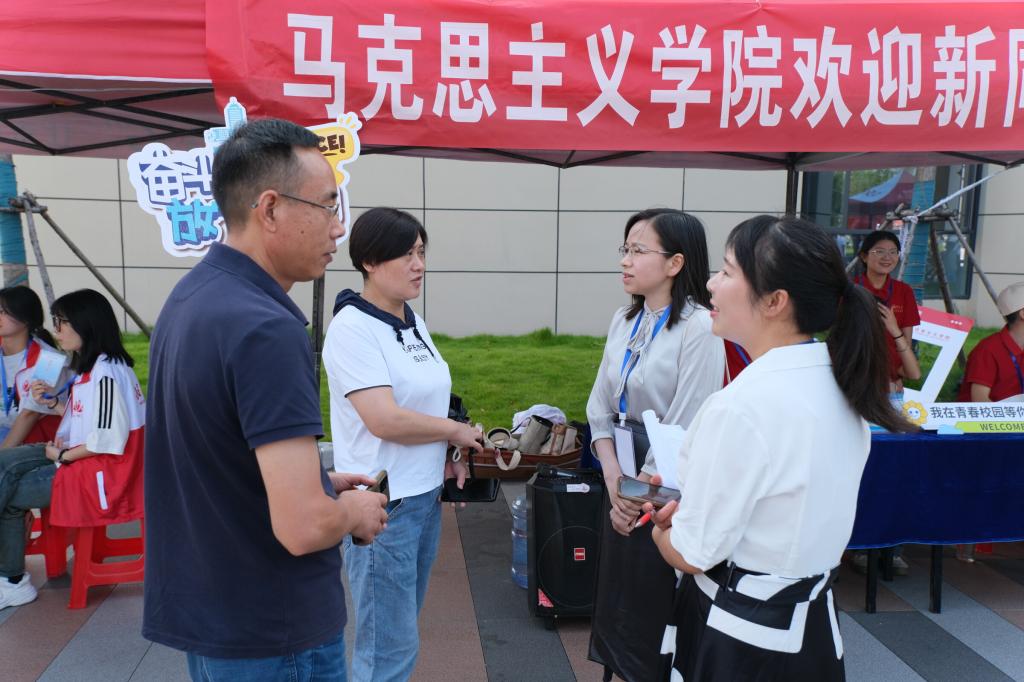 8月31日上午,志愿者们早早地守候在迎新点,为新生及其家长答疑解惑,主动帮助他们核验身份、登记信息、领取文件和入住宿舍,热情周到的服务充分展现了学院的温情与特色,让马院“小萌新”们初入校园,便感受到满满的归属感。