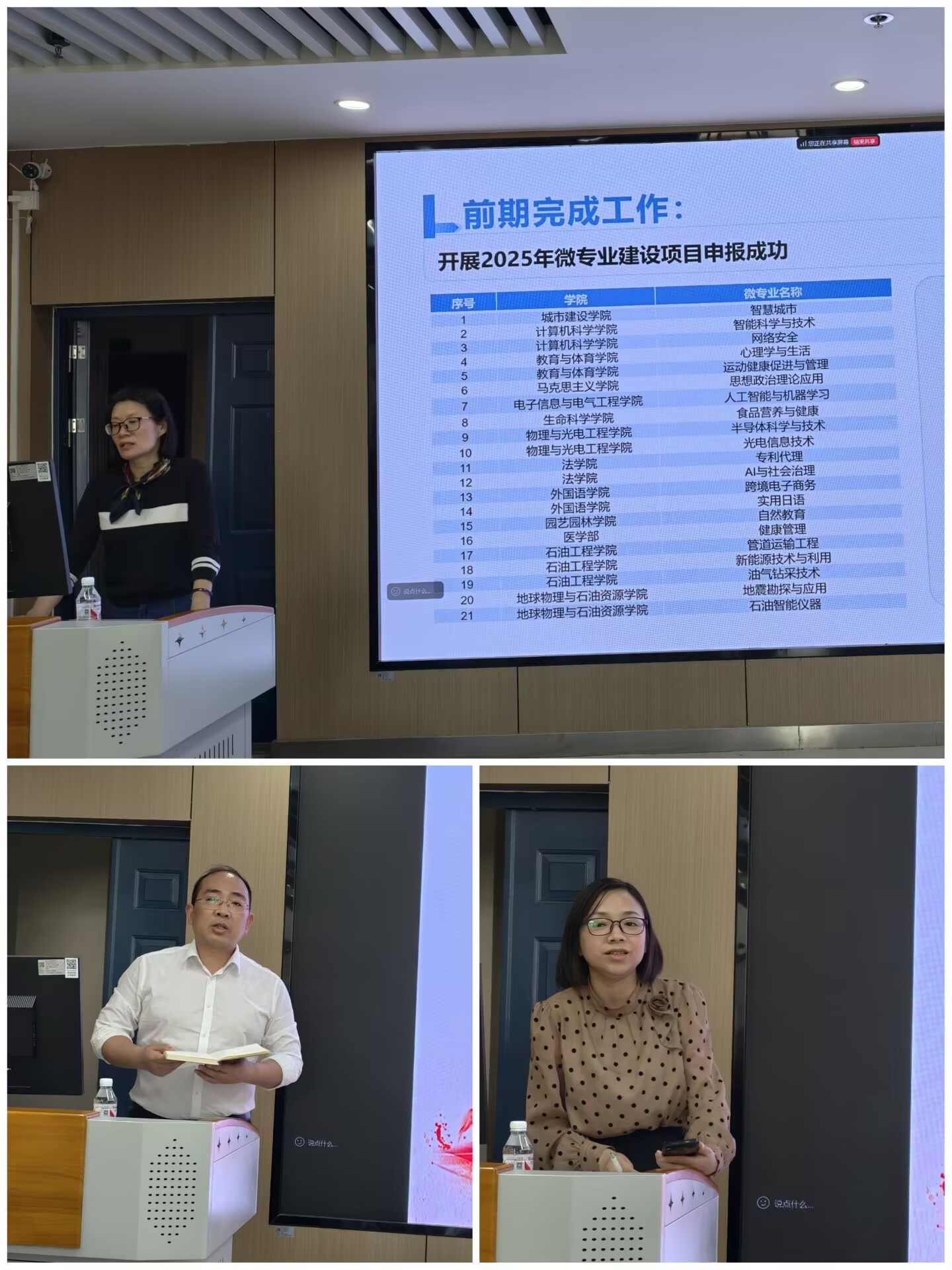 张莉副院长就近期微专业建设项目申报、本科生毕业论文中期检查、教学成果奖申报、期中教学检查等教学相关工作进行了总结和部署;涂江波副院长通报了Vwin德赢唯一官方网站硕士研究生招生及毕业论文答辩、科研项目申报等工作进展;汤慧珍讲解了学院全员就业育人工作实施方案,传达学习了学校关于进一步加强学生安全教育管理的工作方案。