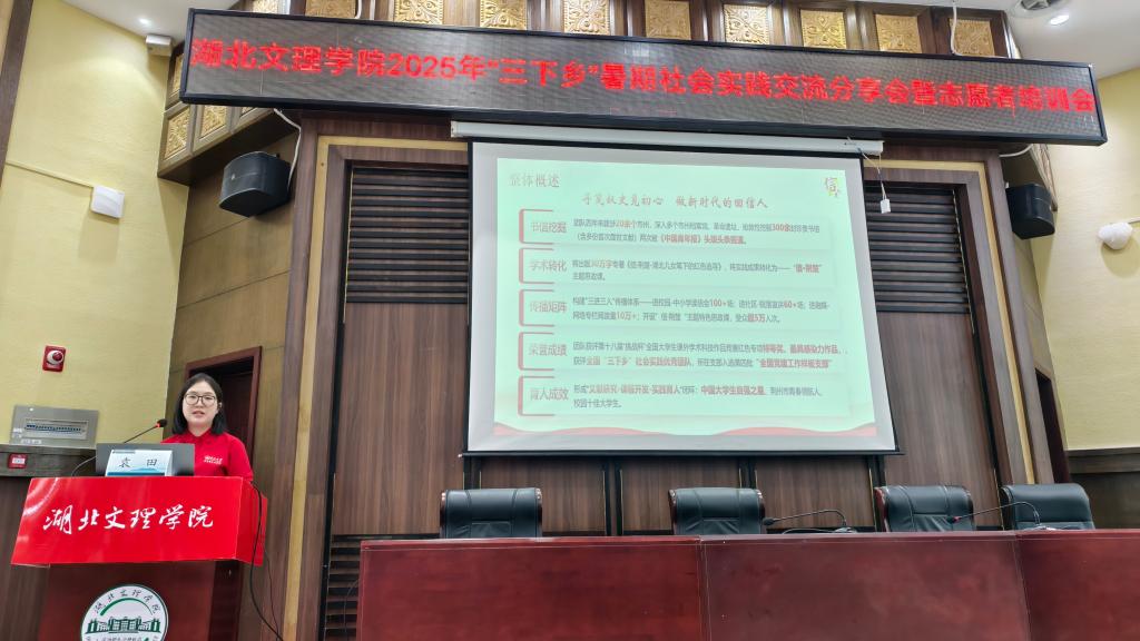 6月20日下午,湖北文理学院举行2025年暑期“三下乡”社会实践交流分享会暨志愿者培训会,该校党委副书记王瑶珺出席会议。Vwin德赢唯一官方网站“信·荆楚”团队受邀作经验交流。