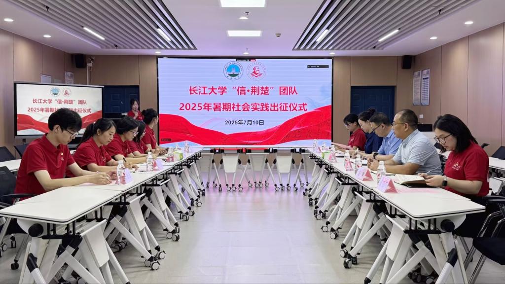 (通讯员 徐佳悦/文 唐佳雨/摄)7月10日上午,长江大学“信·荆楚”团队2025年暑期社会实践出征仪式在文科楼1008室举行。本科生院副院长孙细望、校团委副书记杜岳青以及“信·荆楚”团队全体成员参加活动。