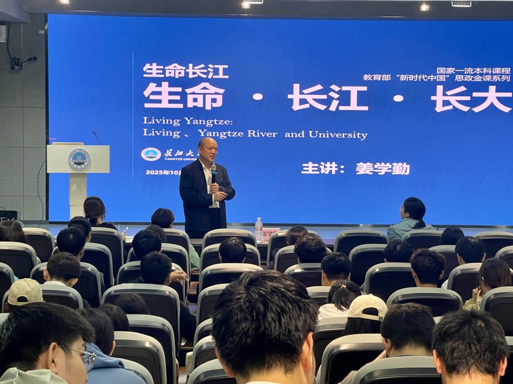 (通讯员:王雅宁)10月15日晚,大型思政公选课《生命长江》第十四季第一讲在长江大学东校区16教A313教室正式开讲。vwin德赢AC米兰官网院长姜学勤教授再度担任主讲人,以“生命·长江·长大”为主题,结合“大变局背景下的复兴之路”,带领同学们展开一场关于生命、文明与时代责任的深度对话。