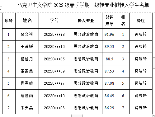 根据教务处《关于开展2022级普通本科生春季学期转专业工作的通知》、《长江大学普通本科生专业分流与转专业管理办法(试行)》(长大校发[2019]260号)和《vwin德赢AC米兰官网2022级本科生春季学期平级转专业考核工作方案》,经学生本人申请,教务处资格审核,Vwin德赢唯一官方网站对通过审核的40名学生进行了面试考察,汇总必修课平均成绩、小论文成绩及面试考核成绩,形成最终录取名单。经学院党政联席会议讨论通过该名单,现将vwin德赢AC米兰官网2022级本科生春季学期转专业拟接收名单予以公示。
