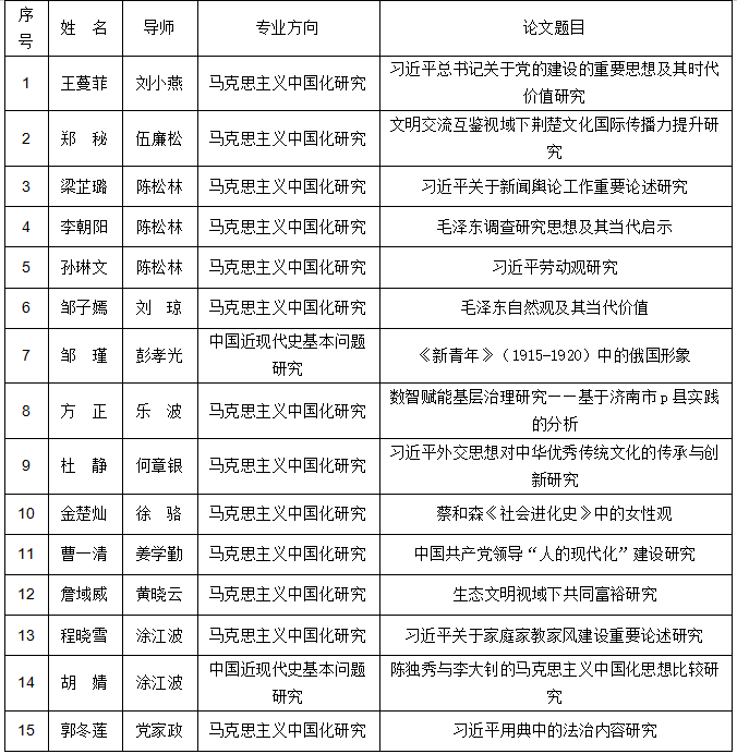 答辩研究生(序号即为答辩顺序,组长王曼菲):
