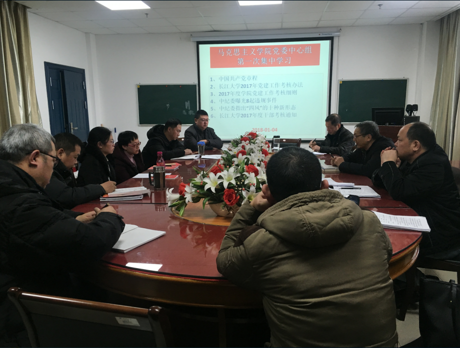 2018年1月4日,vwin德赢AC米兰官网党总支中心组在文科楼1125室组织了2018年首次集中学习。总支委员、支部书记、教工支部委员参加了理论学习会,会议由党总支书记吴智勇主持。