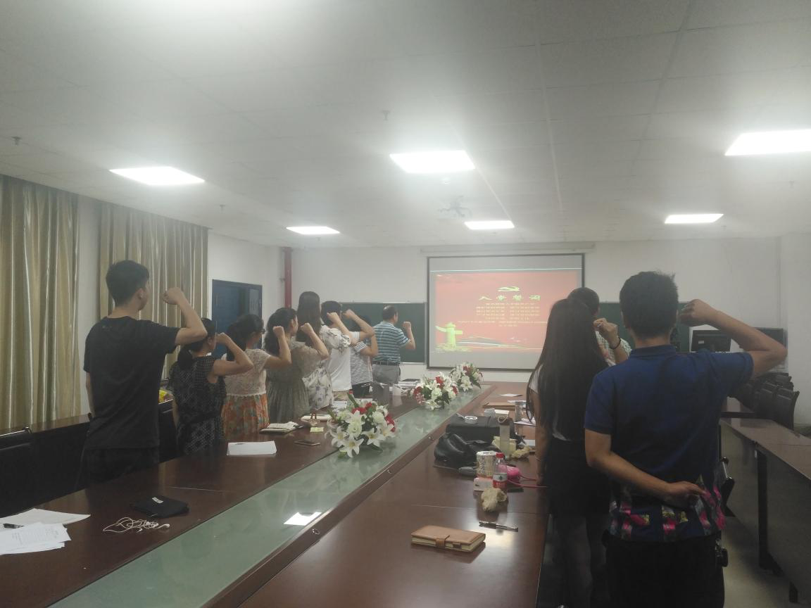 vwin德赢AC米兰官网于6月21日组织开展了以“不忘初心 牢记使命”为主题的“支部主题党日”暨纪念建党97周年活动。活动的议程共有五项:一是重温入党誓词;二是集体诵读党章第三章;三是缴纳6月党费;四是各支部书记讲党课;五是学习讨论并开展批评与自我批评。