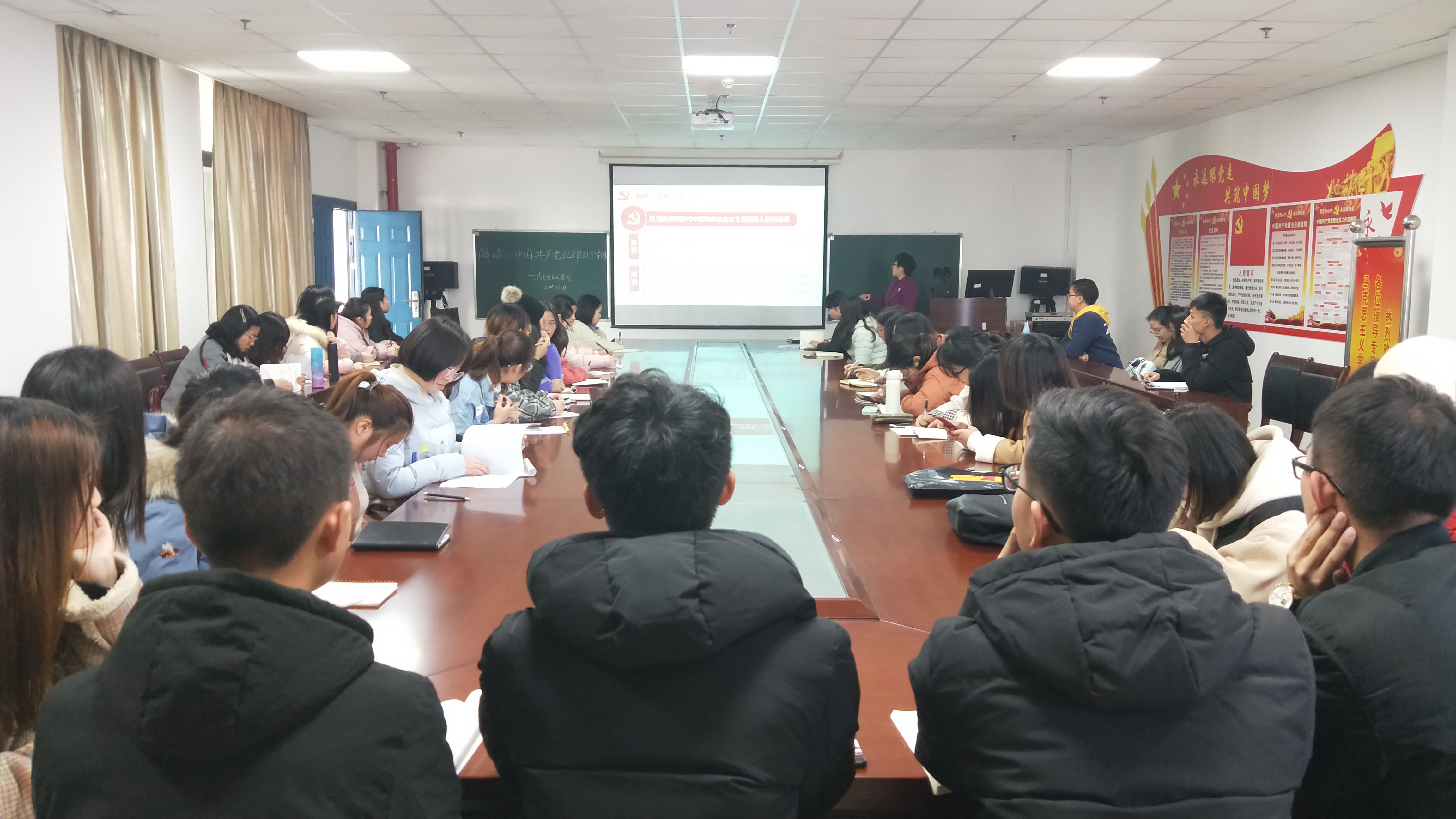 马书记从纪律处分条例制定的意义及要求、新条例九大亮点解读、新条例45条开除党籍 “高压线”三个方面为学生做了讲解。她首先讲解了纪律处分条例制定的意义有三个:维护党章和其他党内法规、严肃党的纪律、坚持从严管党治党。随后她着重强调了本次新修订条例的九大亮点,第一是把习近平新时代中国特色社会主义思想写入指导思想;第二是“两个坚决维护”确保党中央权威和集中统一领导;第三是“四个意识”筑牢思想防线;第四是突出监督执纪的“靶心”;第五是“四种形态”体现惩前毖后、治病救人;第六是推动党纪国法“无缝衔接”;第七是从严处分凸显“越往后越严”的震慑作用;第八是严惩“七个有之”,净化政治生态;第九是严查新型违纪行为,让违纪者无空可钻。最后她有针对性的讲解了新条例45条开除党籍 “高压线”。通过本次党课的教授,教育引导全院学生党员、学生干部全面掌握精神实质,增强党章党规党纪意识。