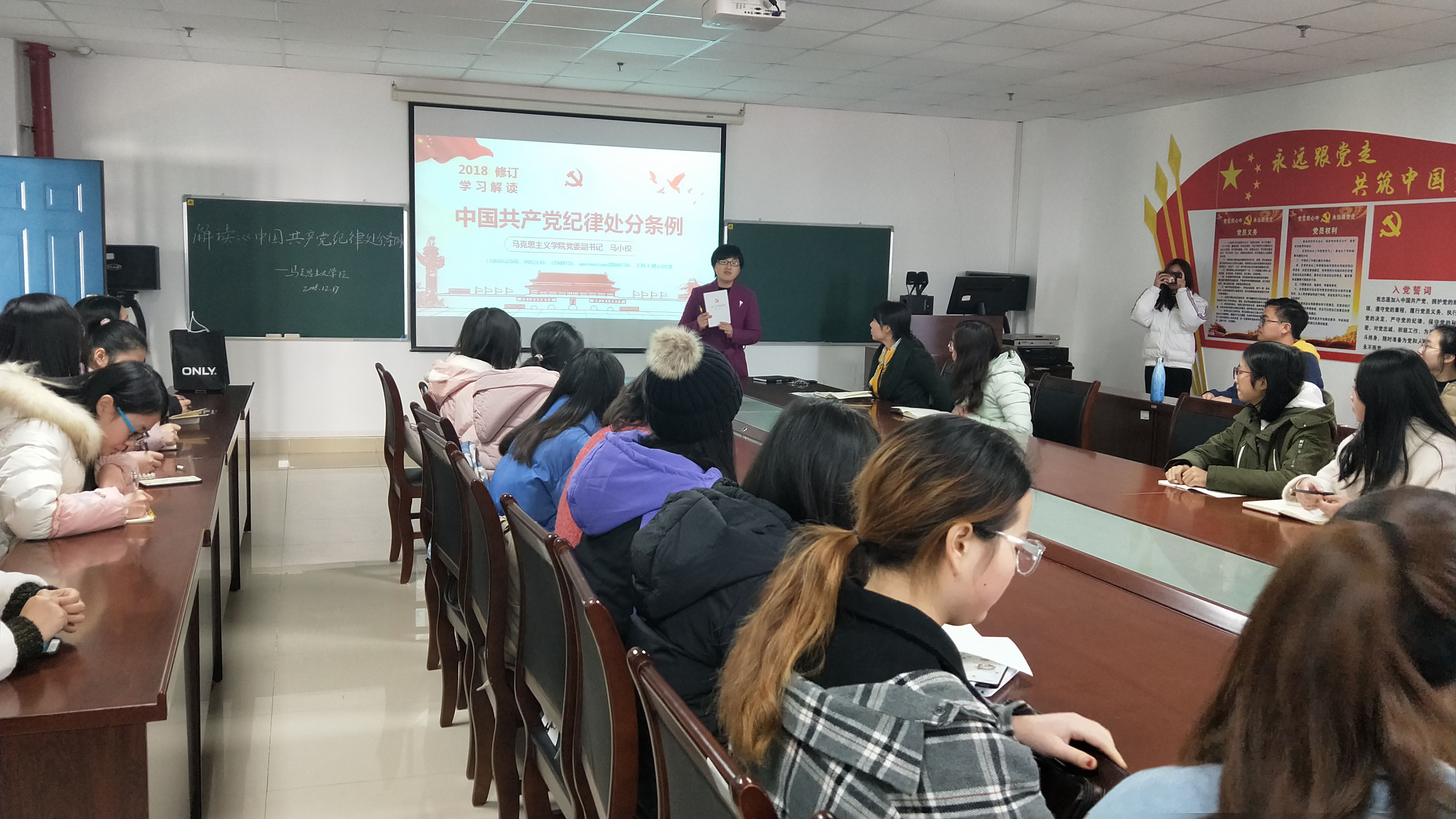 为推动新修订的《中国共产党纪律处分条例》发挥纪律建设标本兼治的利器作用,vwin德赢AC米兰官网于2018年12月17日中午12点在文科楼1104会议室召开大会,由vwin德赢AC米兰官网党委副书记马小佼为本科生全体党员、入党积极分子、学生干部讲了题为《学习解读中国共产党纪律处分条例》的主题党课,引导学生党员、入党积极分子、学生干部认真学习、深刻领会、准确把握《条例》精髓和实质。