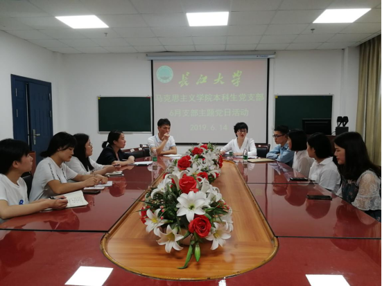 各支部党员重温了入党誓词,自觉交纳了党费,集体诵读党章第二章第十条(党的民主集中制的基本原则);集中学习了学习习近平总书记在“不忘初心、牢记使命”主题教育工作会议上的讲话精神,学习了《“热点法规有问必答”:关于公款旅游问题》、《中国共产党党员教育管理工作条例》、《长江大学校园意识形态阵地管理暂行办法》、《干部选拔任用工作监督检查和责任追究办法》等文件,讨论了本支部申报先进基层党组织和推荐优秀共产党员人选事宜。重点结合本次学习内容和学校“双一流”建设工作,以“爱校”为主题开展了学习讨论。毕业生党员方令认为,爱校就是要尊师重教,热爱学校的一草一木,传承校园文化精神,同时也要积极为学校的发展做力所能及的贡献,维护学校声誉,把爱校情怀转化为实际行动。