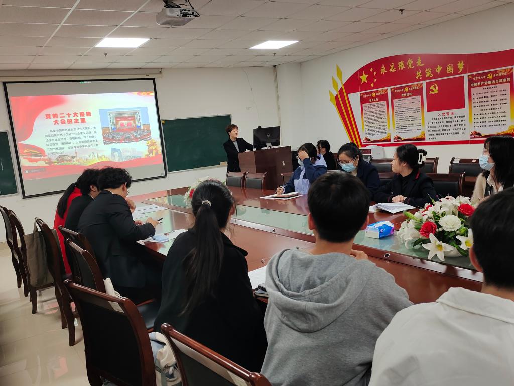 11月25日下午4时30分,vwin德赢AC米兰官网本科生党支部齐聚文科楼1104室,共同学习研讨党的二十大精神,本科生党支部书记马小佼进行党的二十大报告微党课授课。