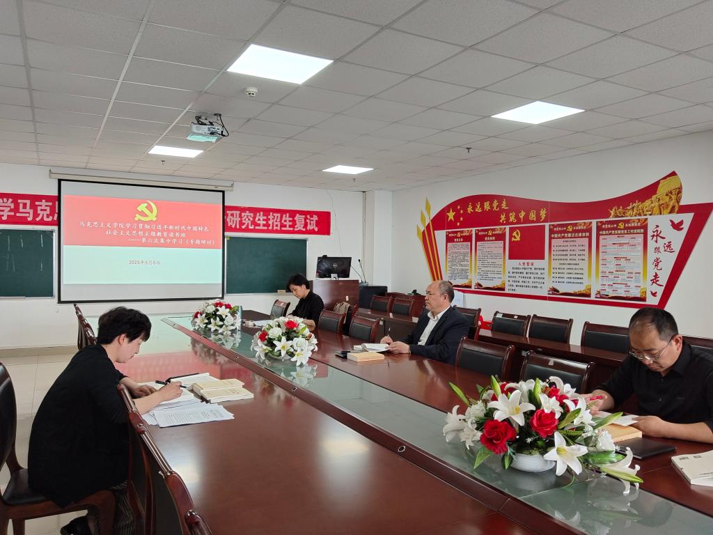 5月5日晚,vwin德赢AC米兰官网学习贯彻习近平新时代中国特色社会主义思想主题教育读书班在文科楼1104室开展第六次集体学习。深入学习了《习近平著作选读》第一卷“加强和改进党的群团工作”等12个篇目内容,逐字逐句研读了《习近平新时代中国特色社会主义思想专题摘编》中有关“实施科教兴国战略,强化现代化人才支撑”的论述。院领导姜学勤、刘小燕等聚焦“三位一体”推进高水平大学建设作了交流发言。