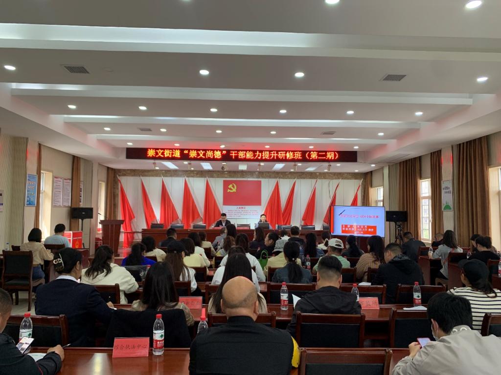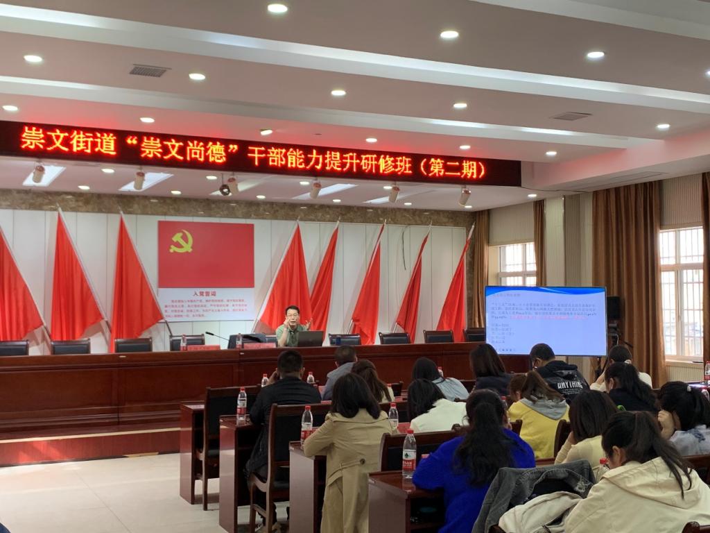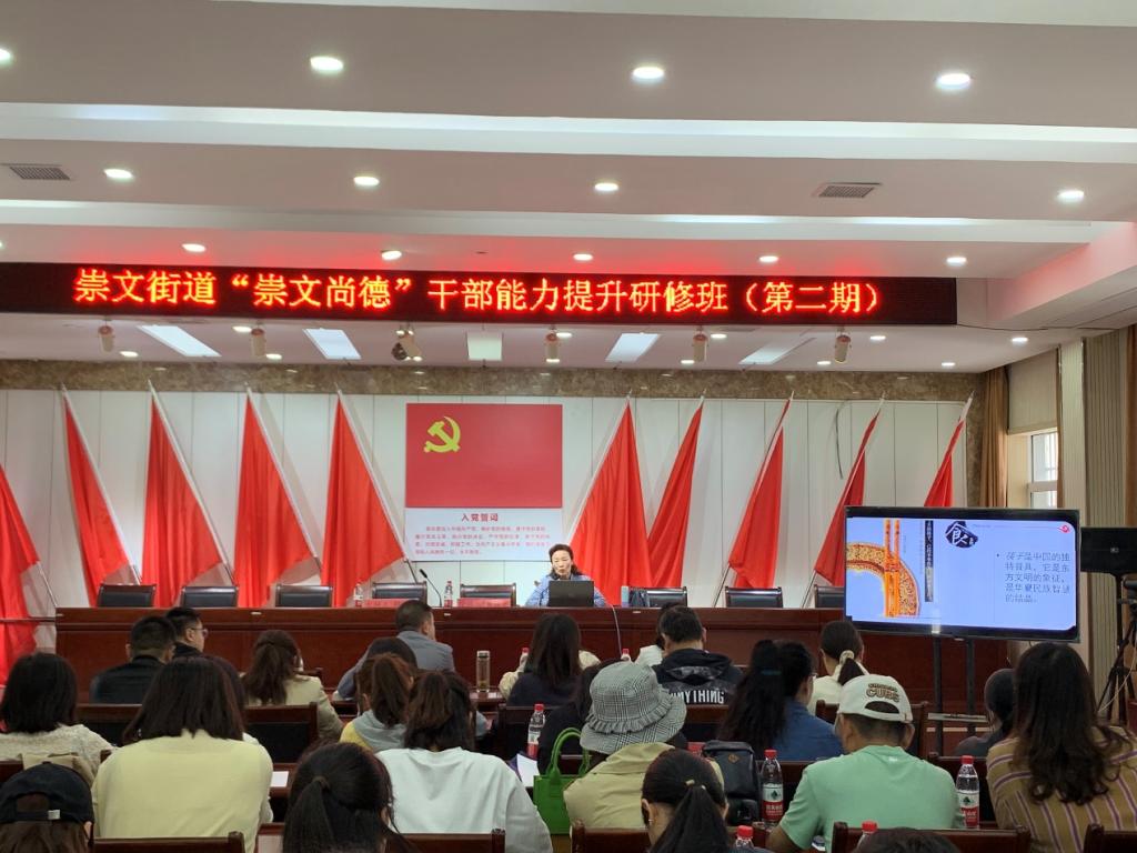 (通讯员 周思雨 谢蕾)4月14日,沙市区崇文街道“崇文尚德”干部能力提升研修班第二期在崇文街道办事处正式开讲,主讲人分别为vwin德赢AC米兰官网教授贾廷秀和人文与新媒体学院院长何世龙,沙市区崇文街道60余人参加了此次培训。