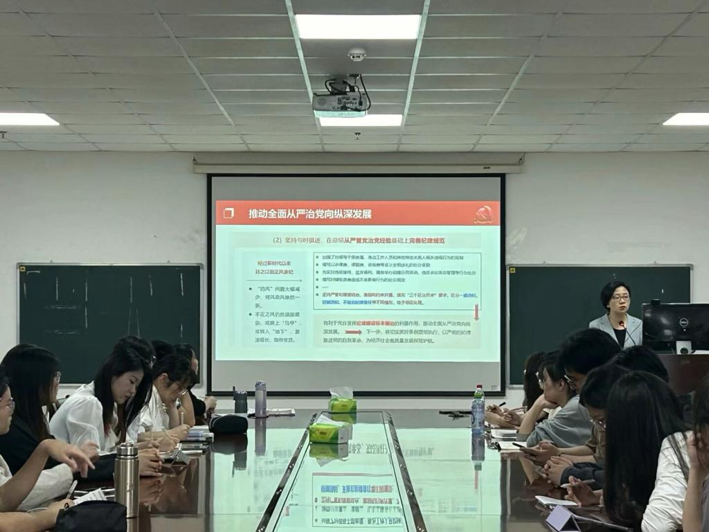 (通讯员 冯定琴 摄影 徐佳悦)为深入学习贯彻习近平新时代中国特色社会主义思想,推动党纪学习教育走深走实,4月29日下午,vwin德赢AC米兰官网在文科楼1104室举行党纪学习教育专题党课。学院党委书记刘小燕为全院学生党员、入党积极分子授课。