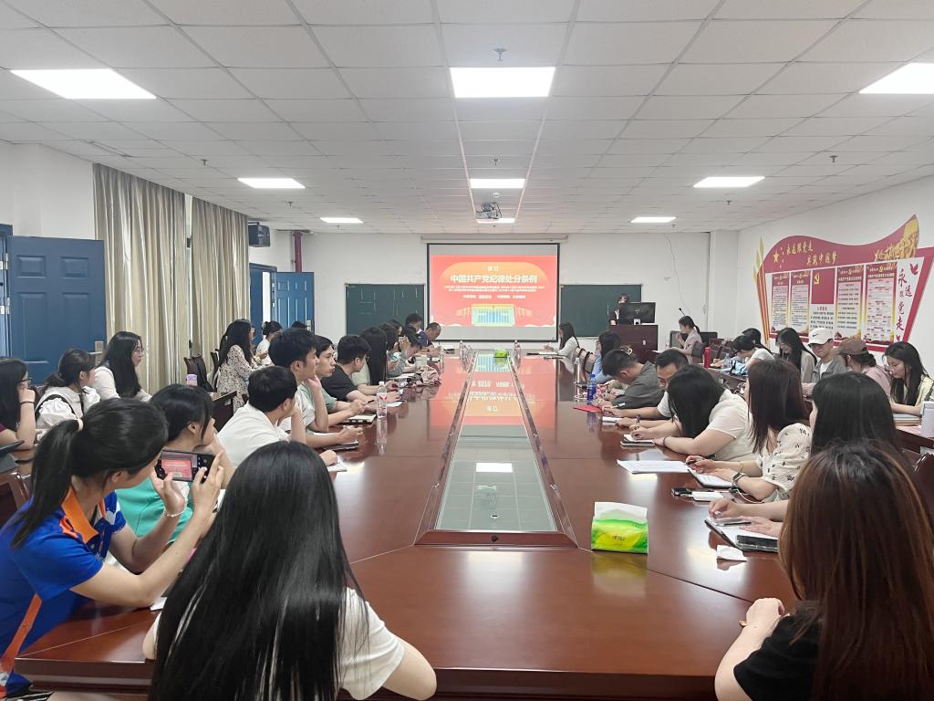 (通讯员 黎娟)为推进党纪学习教育在研究生党员中走深走实,教育引导全院研究生党员强化纪律意识,严守纪律规矩,5月14日下午,vwin德赢AC米兰官网研究生党员党纪学习教育专题宣讲会在文科楼1104会议室召开。长江大学研究生宣讲团成员熊思懿、王澳琪、王伟受邀作专题宣讲,vwin德赢AC米兰官网党委副书记兼马克思主义理论研究生党支部书记汤慧珍、副院长兼学科思政研究生党支部书记涂江波、全体研究生党员及入党积极分子共50余人参加学习。活动由学院研究生党员吴宜格主持。