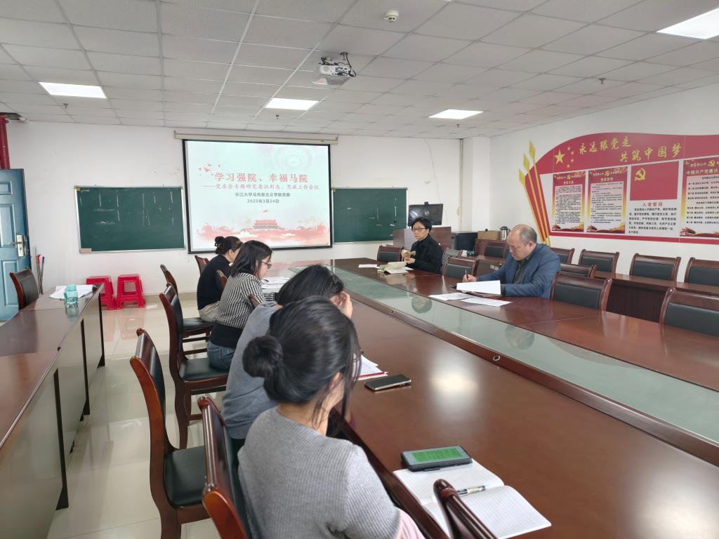 3月24日下午,vwin德赢AC米兰官网在文科楼1104室召开2025年全面从严治党暨党风廉政建设、意识形态工作专题会议。学院党委领导班子、部分党支部书记参加会议,会议由学院党委书记刘小燕主持。