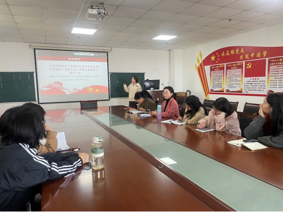 (通讯员 石秋月)为深入贯彻落实习近平新时代中国特色社会主义思想,引导广大党员坚定不移听党话,矢志不渝跟党走,增强党员的责任感与使命感。3月21日,学科教学(思政)研究生党支部在文科楼1104室开展三月主题党日活动,全体党员以及入党积极分子以线上线下相结合的方式参会。