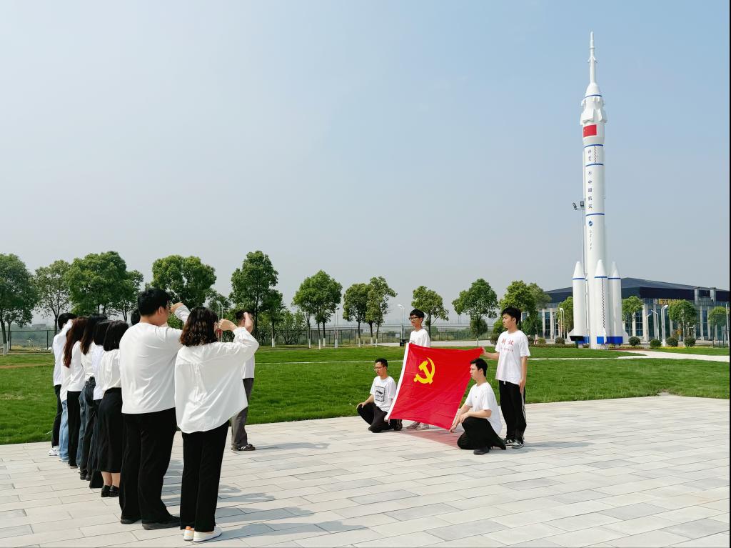 参观结束后,面向鲜红的党旗,马理论研究生党支部书记汤慧珍带领全体党员庄严宣誓。一句句誓言铿锵有力、掷地有声,坚定表达了马院师生传承航天精神、续写奋斗华章的信念和决心。