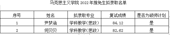 vwin德赢AC米兰官网2022年推免生拟录取名单公示