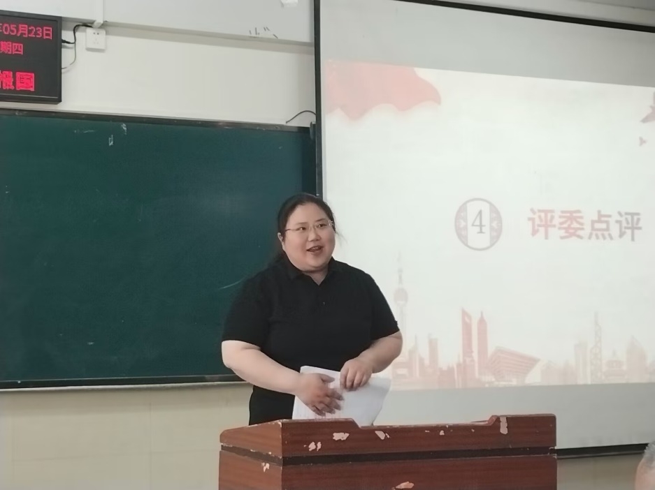 教学展示环节结束后,孙萌老师分别对每一位选手进行了精彩的点评,总体上对选手们的表现予以肯定,同时也指出了一些不足,例如手部动作较多,心理素质有待进一步提高,思维导图需要更详细来帮助学生构建知识框架等,并分享给在场同学三句话:以“问渠哪得清如许,为有源头活水来”期望选手作为未来的思政课教师要有深刻的政治情怀,坚定理想信念,锤炼高尚品质,从“源头”和“活水”之中感悟新时代蓬勃发展的活力,将爱国情、强国志、报国行融入教育实践;以“嘈嘈切切错杂弹,大珠小珠落玉盘”对选手的即兴演讲和模拟授课进行方式、方法上的指导;“纸上得来终觉浅,绝知此事要躬行”鼓励选手在今后的实践中多加练习,进入职场更是要通过不断地打磨来上好思政课,期望选手在师范生道路上更好的摸索,不断提高自身素养,共同努力成为习近平总书记所说的“有理想信念、有道德情操、有仁爱之心、有扎实学识”的好老师!