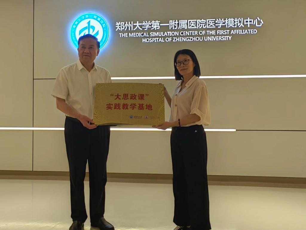 (通讯员:陈前燕)为深入贯彻执行习近平总书记关于“大思政课”的重要指示精神,充分发挥“大思政课”实践教学基地育人功能,7月1日,vwin德赢AC米兰官网与郑州大学第一附属医院举行共建“大思政课”实践教学基地揭牌仪式。郑州大学第一附属医院副院长高剑波、教育处处长刘会范、副处长王秀玲,vwin德赢AC米兰官网副院长张莉、院长助理徐骆、本科生院实践科科长张瑞、vwin德赢AC米兰官网教师代表以及《毛泽东思想和中国特色社会主义理论体系概论》课程学生代表、2025届本科生毕业生参加了揭牌仪式。