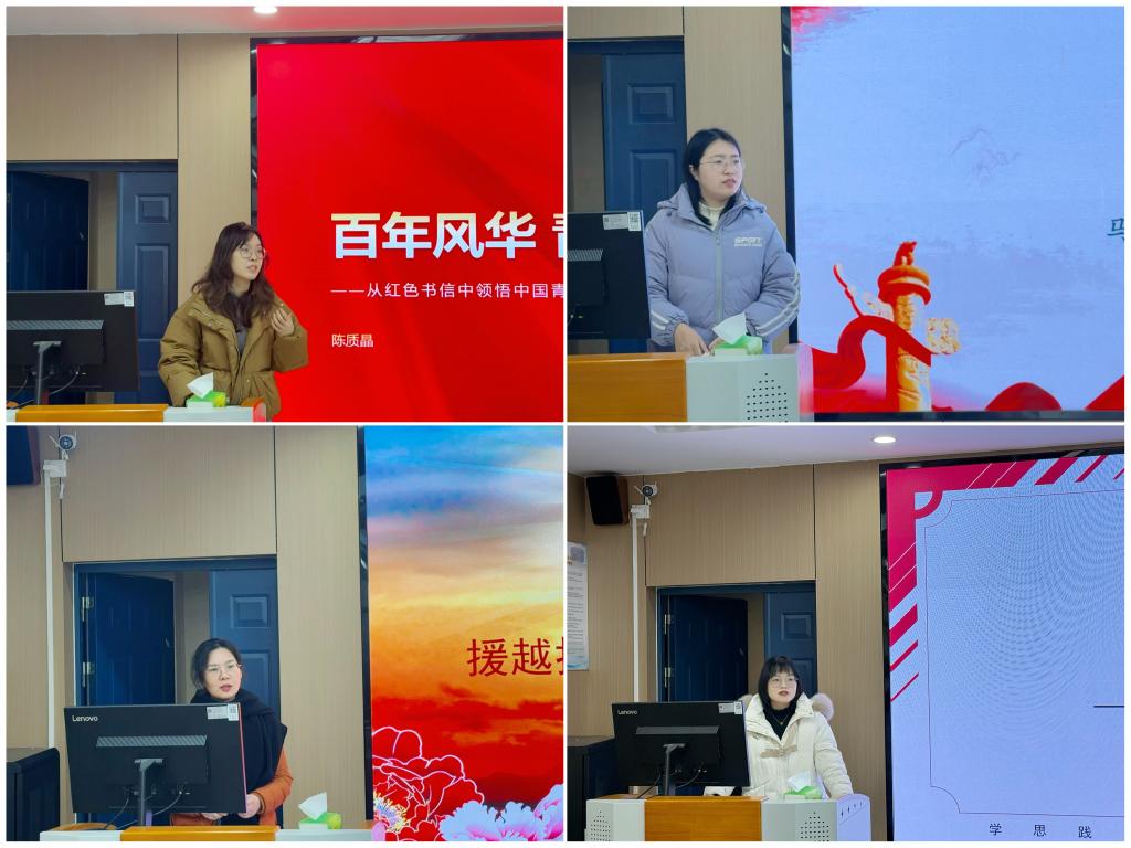 备课会以“说课”的形式开展。课程组陈前燕、陈质晶、饶玲、刘小燕、张莉分别就“无声的功勋—隐蔽战线的无名英雄”、“百年风华 青春对话”、“觉醒年代里的父母爱情”、“伟人信物中的荆楚情”、“抉择”专题,从书信选取、课程内容、教学设计等方面作教学展示。涂江波、肖芬蓉等课程组教师立足课堂教学、各抒己见,充分表达教学设想。老师们的教学展示各具特色,引经据典,将知识点渗透于案例中,穿插师生互动讨论环节,体现了“合作、探究、互动、评价”的教学模式。