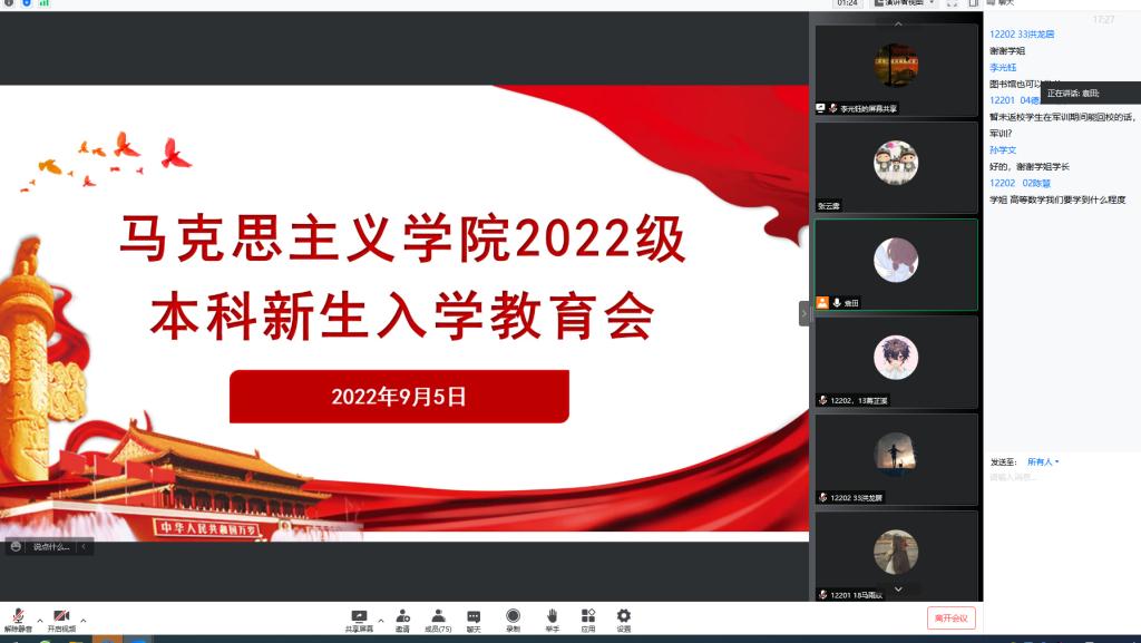 随着迎新工作的圆满结束,vwin德赢AC米兰官网新生入学教育系列活动也拉开了序幕。9月5日上午,Vwin德赢唯一官方网站通过腾讯会议召开了2022级本科生线上见面会,全体辅导员、全院本科新生共同参会。会上,辅导员张云雾结合校史校情宣讲了学院的发展历史、办学情况,开展了疫情防控安全教育,团委书记李敏介绍了学院共青团工作,党委副书记马小佼勉励新同学:希望同学们在新的人生起点学会适应、学会自律、学会规划;希望同学们遵守校纪校规、关注生命安全,珍惜大学时光。随后,新生从个人基本情况、未来规划等方面进行了自我介绍,将活动推向了高潮。当日,新生们还自学了疫情防控政策,以宿舍为单位观看防诈骗教育视频,由学长学姐领学了学校的规章制度,将安全文明教育落到了实处。