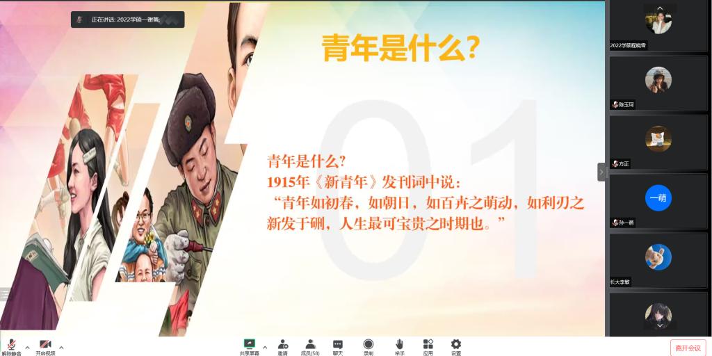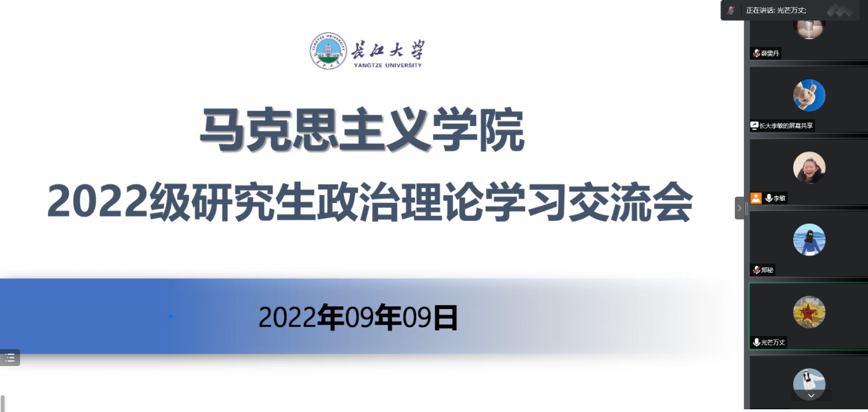 (通讯员 薛雯丹)2022年9月9日下午,vwin德赢AC米兰官网通过腾讯会议召开2022级研究生政治理论学习交流会。学院党委副书记马小佼、2022级全体研究生参加会议,辅导员李敏主持会议。