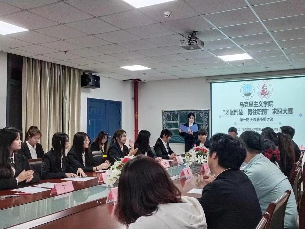 (通讯员 周芯如)为深入贯彻习近平总书记考察湖北重要讲话精神和省第十二次党代会精神,帮助大学生树立正确的择业观,提升求职能力,9月25日晚7时,vwin德赢AC米兰官网于文科楼1104室举办“才聚荆楚,勇往职前”求职大赛初赛。初赛以无领导小组讨论赛的形式选拔,就业专干李敏、团委学生会负责人王晓彤、郢都论坛负责人张李蔚、修远班负责人李周翊涵、慕晨辩论队负责人陈嘉锐任活动评委。
