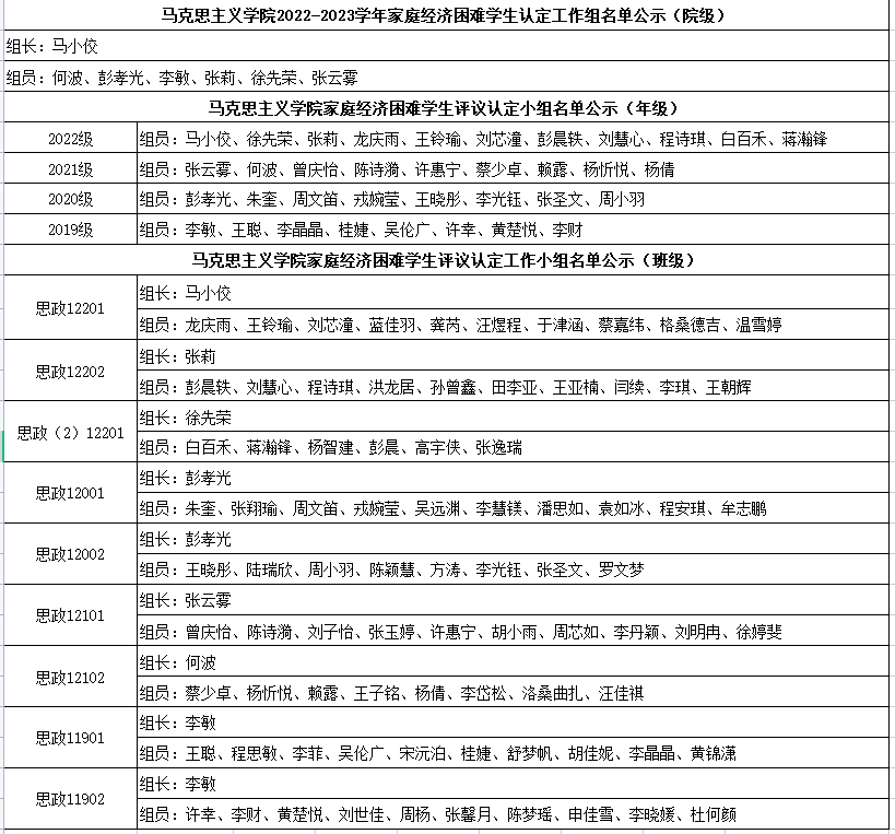 根据长江大学学生工作处《关于做好2022-2023学年家庭经济困难学生认定工作的通知》,结合学院实际,现将Vwin德赢唯一官方网站2022-2023学年家庭经济困难学生认定评议工作组成员名单公示如下: