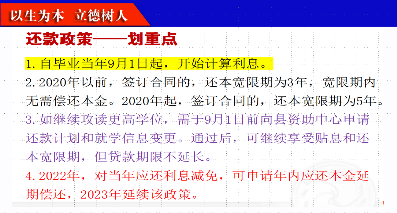 为加强诚信教育与感恩教育,准确掌握贷款毕业生基本信息,方便毕业生贷后管理,促进国家助学贷款工作的良性循环,5月26日上午,vwin德赢AC米兰官网在文科楼1104室召开了2023届毕业生离校工作会暨生源地助学贷款还款确认培训会。本次会议由学工办张云雾老师主持。