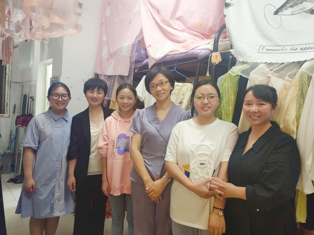 在毕业生寝室,老师们与即将离校的同学亲切交谈,关心询问他们的学习生活、考研深造、就业工作等情况,强调了安全注意事项,鼓励同学们到新的岗位后要主动学习、踏实工作,祝福他们前程似锦、毕业快乐。交谈过程中,毕业生们表达了对学院领导、老师的感谢和对母校的眷念,纷纷与老师们合影留念。