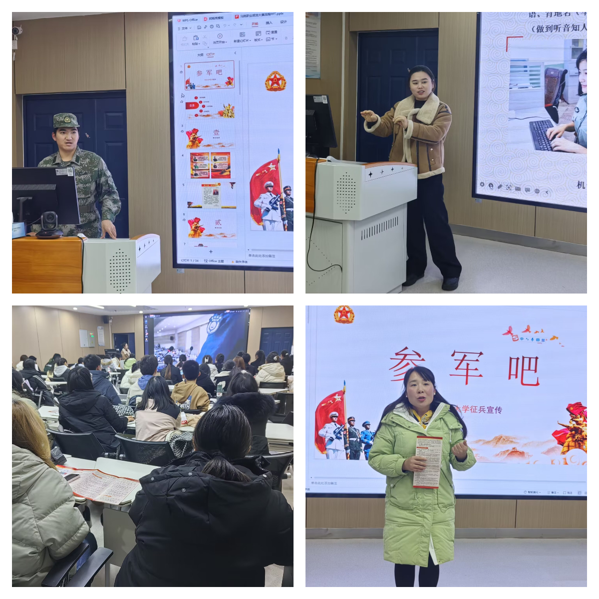 会上,通过播放学校征兵宣传视频,同学们对学校征兵工作有了初步认识。刘洁重点从新兵生活、话务训练、退伍复员、回归学校四个方面分享了军旅故事,陈茂则全面介绍了大学生入伍的基本流程、大学生参军优惠政策以及学校参军入伍学生管理办法,让同学们更为清晰地认识到大学参军入伍是练就强健体魄、打造坚毅人格的重要途径。