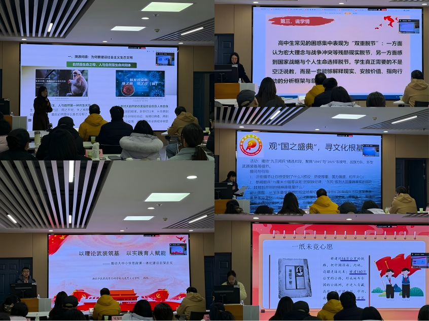 (通讯员:洪思齐)12月26日,党的二十届四中全会精神融入荆州市大中小学思政课集体备课会议在长江大学文科大楼1008举行。本次会议由荆州市教育局、长江大学主办,vwin德赢AC米兰官网和荆州市教科院承办。来自长江大学、荆州区教育局、荆州学院、长江大学文理学院、湖北中医药高等专科学校、荆州理工职业学院、荆州职业技术学院、长江艺术工程职业学院、荆州市教育科学研究院、荆州市机械电子工业学校、荆州市东方红中学、监利市新沟中学、荆州市江陵中学、荆州成丰学校、荆州市沙市实验中学、江陵县第一初级中学、荆州市荆州小学、荆州市沙市区实验小学等大中小思政课负责人和骨干教师30多人齐聚一堂,围绕党的二十届四中全会精神有机融入思政教育教学全过程,推进大中小学思政课一体化改革创新议题展开交流研讨。