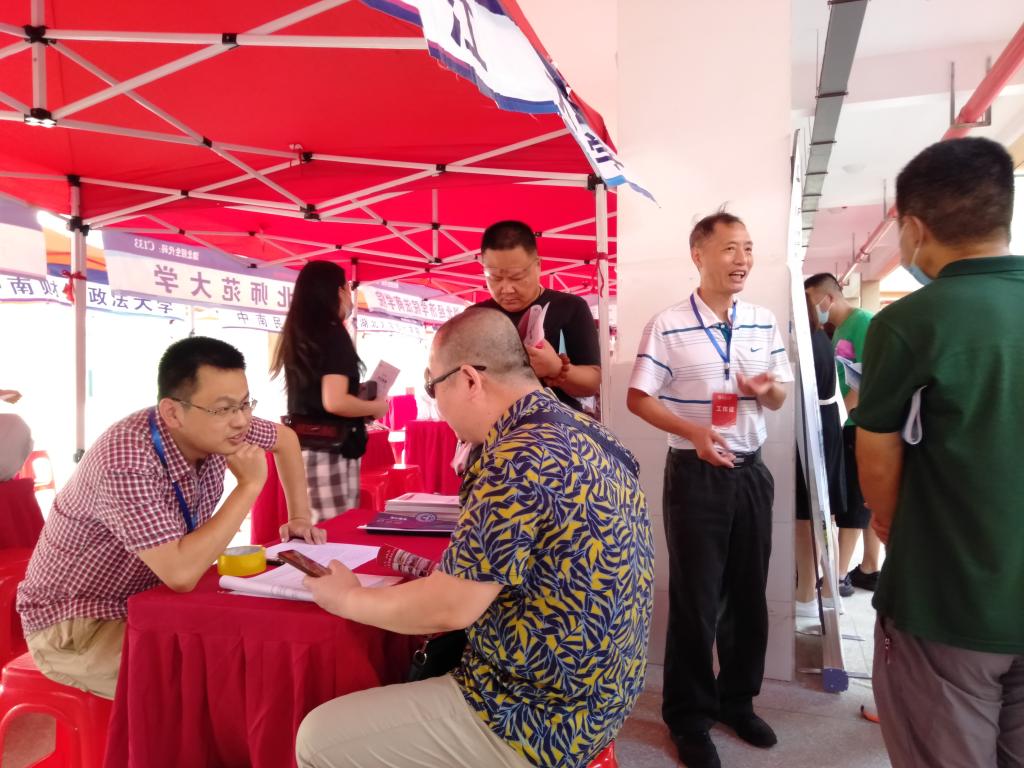 6月29日上午,宣传小组来到汉川一中,首先开展摆点、咨询等工作。咨询点如当天的太阳一般火热,每一位咨询报考信息的家长眼中都流露出兴奋与忧虑,宣传小组成员也都尽心尽力的做着讲解与宣传。咨询结束,宣传小组与该校校长进行座谈,了解了新高考元年汉川一中的高考情况和该校针对高考改革所采取的若干措施及效果,交流了考生志愿填报的相关注意事项和方法。当天下午,宣传小组前往应城一中,拜访该校领导,为次日驻校宣传做好准备。
